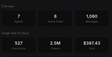 Real usage numbers from my deployment — 7 agents, 30 days.
